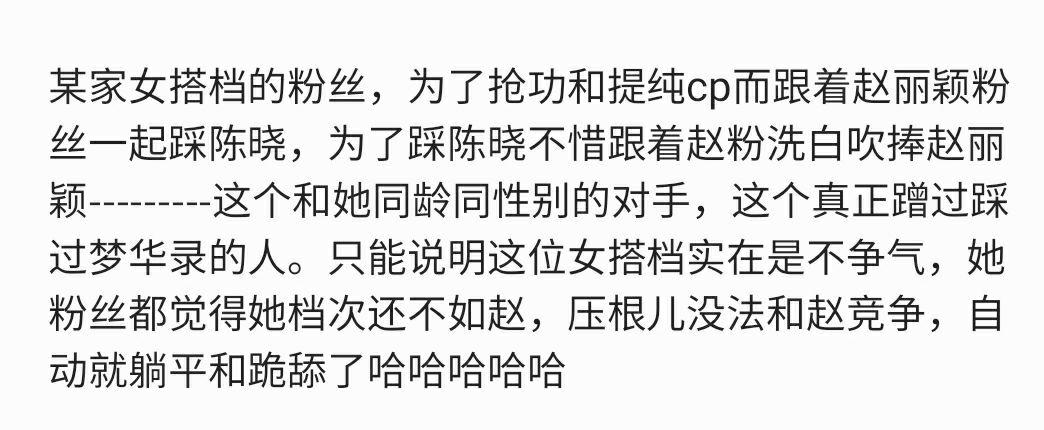 至于赵丽颖现在还有没有黑踩cx,看看赵粉就知道了。