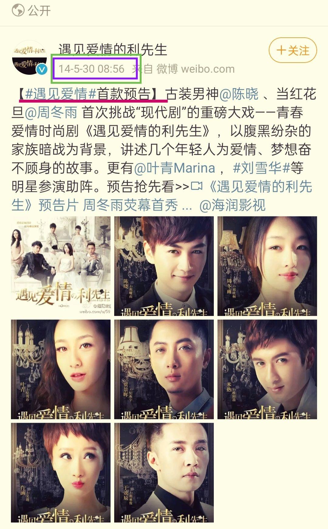 那也是cx zdy的新剧利先生的第一次正式发布宣传片(2014.5.30)的前一晚,微博上早已经提前预告过了,粉丝当时都在盼着第二天,也对新搭档组合寄予厚望。而且几天之后还有发布会。