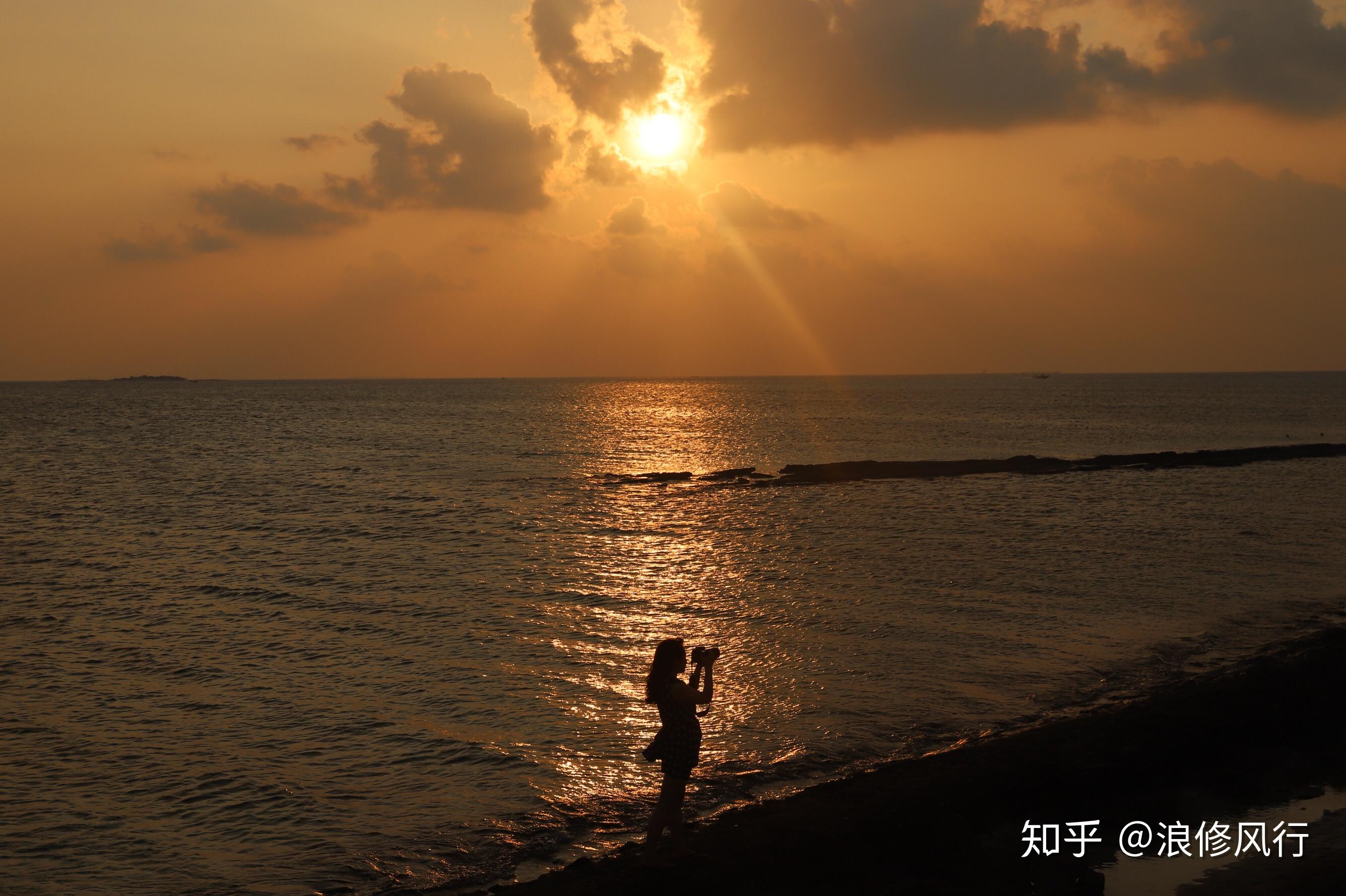 金色的光芒,把天空渲染成了金黄色,把海面上照得金光闪闪。阳光穿过薄雾,直射向我,把我整个人都环抱在阳光里。