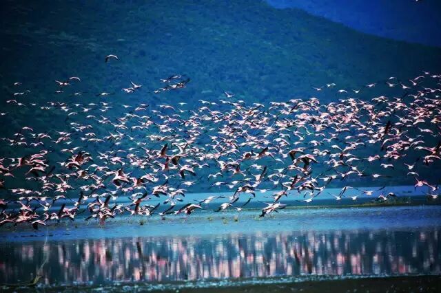 驱车前往博高利亚湖,博高利亚湖就像它周边的湖一样,也是许多非洲火烈鸟的家。湖岸有相当多温泉,大多数都达沸点而且蒸气相当多,可以轻易的将鸡蛋在短时间内煮熟。此外,堡高利亚湖中有相当多的蓝绿藻和矽藻,使得阳光在不同时间照射时,湖面会呈现出不同的颜色,如黄色、粉红色和紫红色等。湖水周围由矮树和草丛包围,里面有斑马、水牛、小羚羊等多种野生动物。中午博高利亚酒店用餐,下午湖边游览后返回纳库鲁酒店用餐休息。