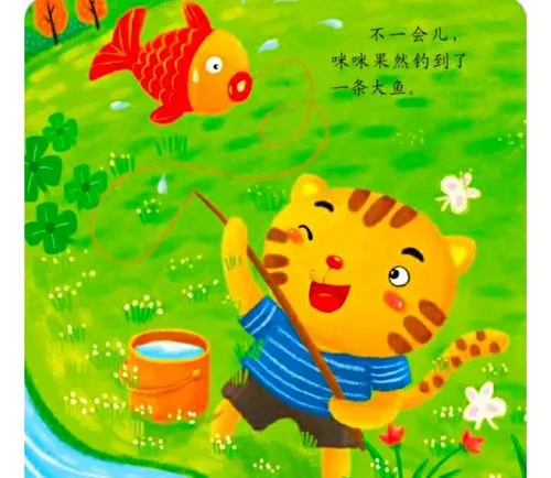 小猫听了猫妈妈的话,再也不去理会蜻蜓和蝴蝶了,就一心一意地钓起鱼来。