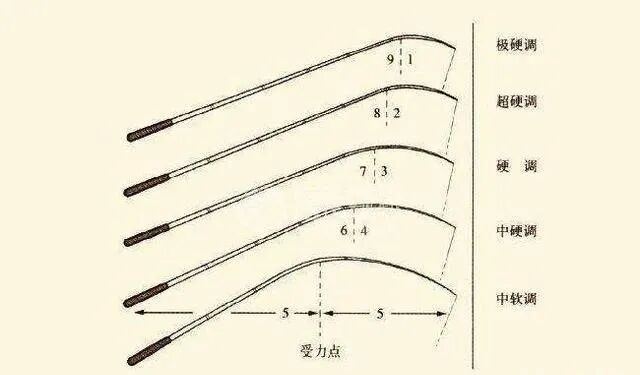 鱼竿的调性从软到硬有55调、46调、37调、28调、19调甚至还有更硬的H类的调性!不知道从什么时候开始,很多人会把一根鱼竿的调性当作判断一根杆子好不好的重要指标。如果你在网上购买鱼竿,很多宣传都是说某某杆子多硬,什么调性之类的!