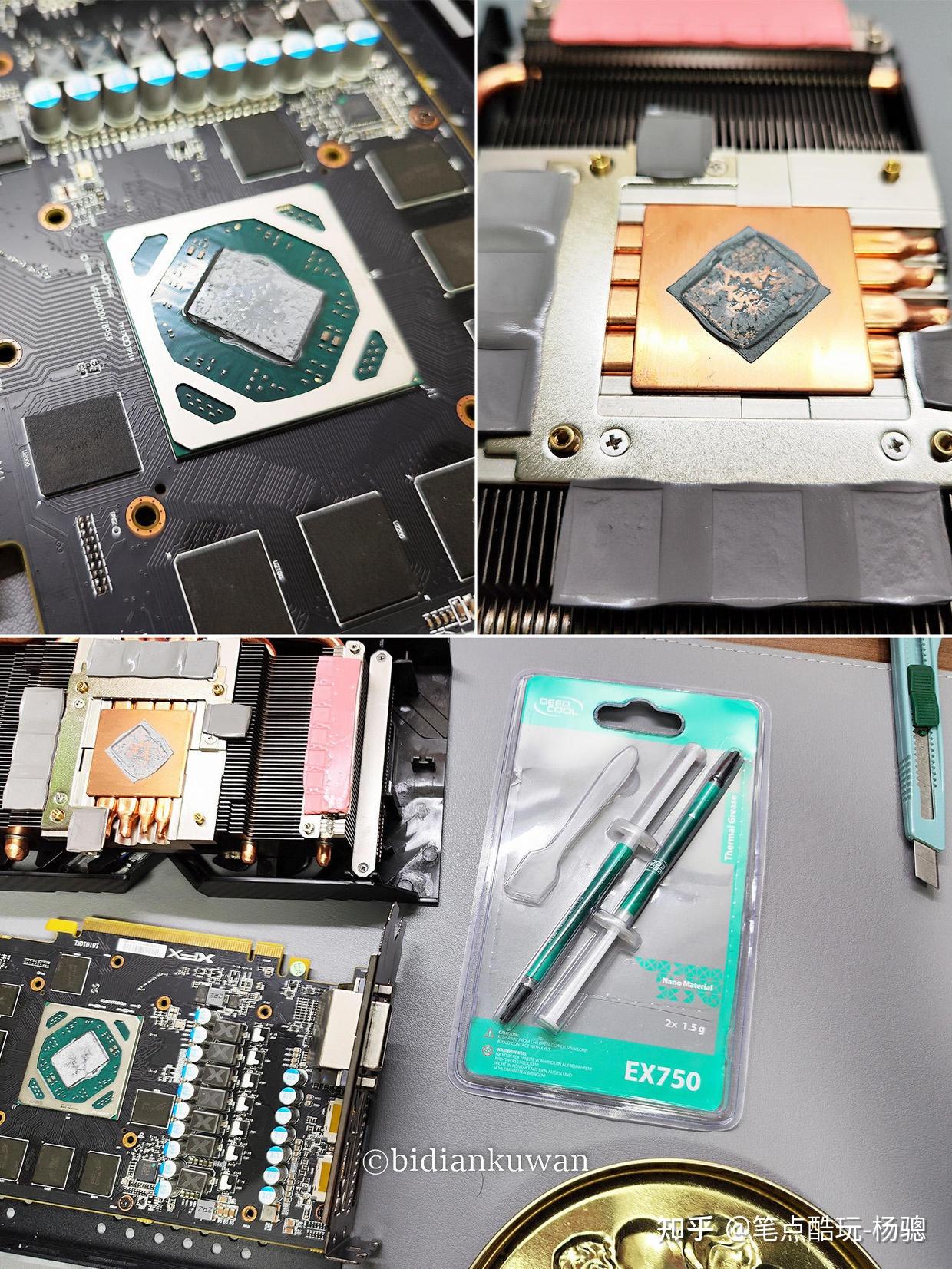 我手头正好还有2管九州风神EX750导热硅脂1.5g,之前有朋友给1080公版显卡换硅脂时用过它,说是降了五六度,这次我也试试。小心地清理、抹匀,再装回散热器,螺丝均力固定,死马当活马医,万一好了呢?