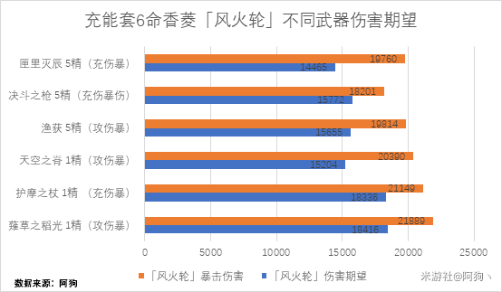本文将以雷电将军与香菱为例,就渔获的伤害期望与部分武器进行对比。