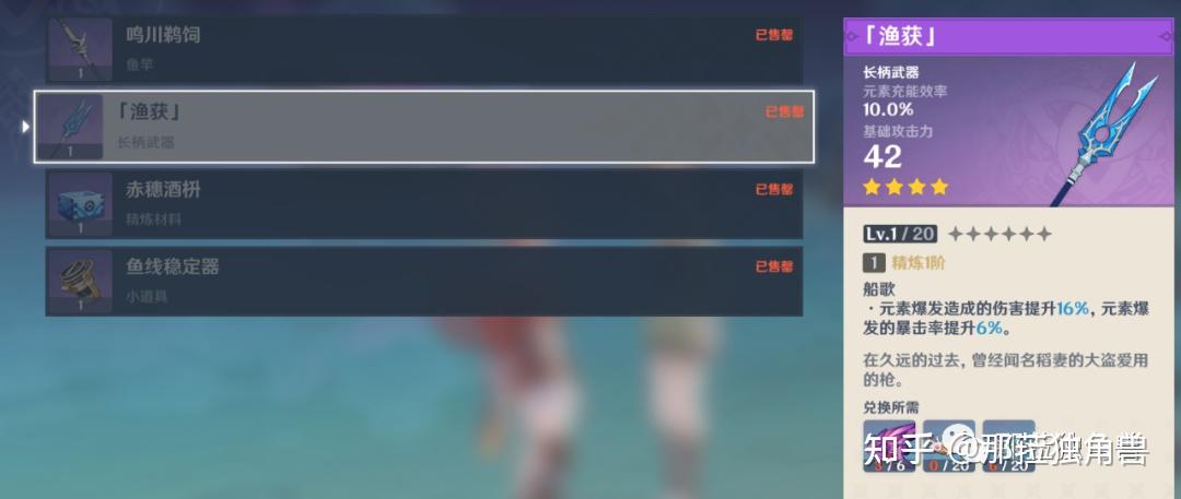 渔获可以大幅提高角色充能属性,并提高元素爆发的伤害和暴击率,适合香菱、雷电影使用,是一把非常优秀的白嫖武器。