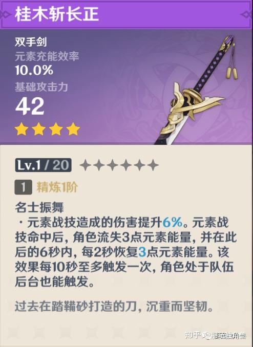 锻造双手剑没有什么特别优秀的,这把桂木斩长正目前只适合北斗使用,并且契合度完美。适用角色: