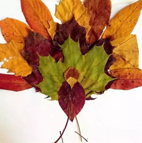 快放假了,现在天气也不冷还有落叶,老师们不妨带着孩子们一起做树叶剪贴画吧~