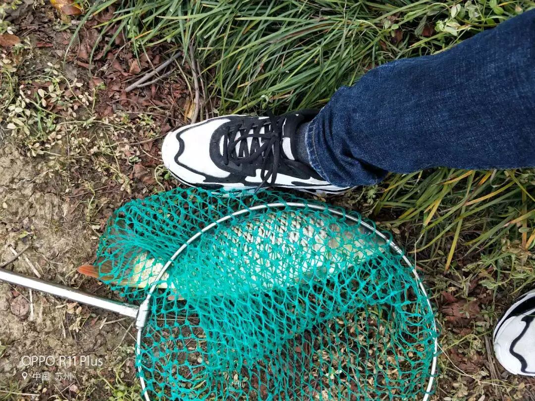 第一尾鱼上钩后,就是不断地上鱼、抄鱼、入护,中间还中了一尾两斤左右的野生大鲤鱼!我旁边用红虫蚯蚓钓的那哥们儿都看傻了,哈哈哈!