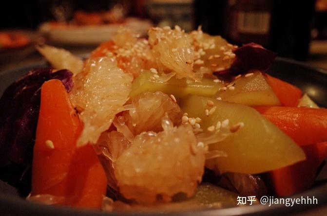 看一下这个菜相当的有特色,这个就是 玉环 文旦做的菜。