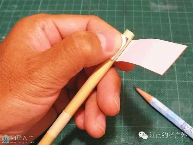 用AA胶将Multi-strand line缠在标尾及标示杆的纸口上。