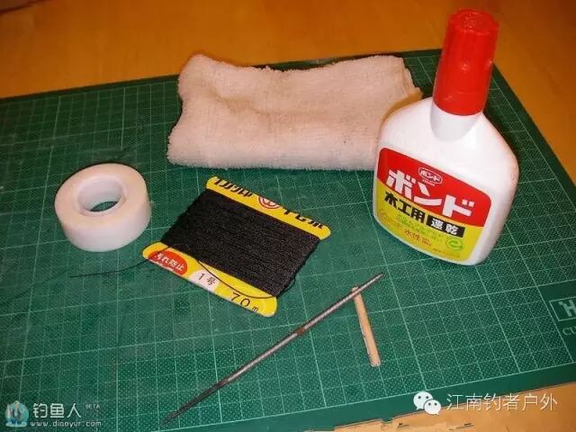 接合及定形工具:"3M"隐形胶纸用作包扎标体定型;木工用白胶浆在文具店有售(建议使用图中品牌);小圆锉及砂纸卷成棒状;湿毛巾一条于标体素材定形及上胶时清洁用。
