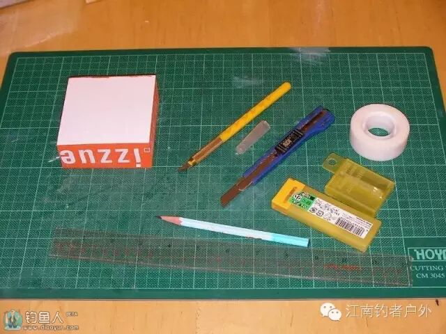 切割工具:尺,铅笔,便条纸用作量度标体圆周及将圆周分开等份;美工笔刀及替换刀片用于浮标顶部及底部切割取形;美工刀及替换刀片用来切断标体素材、竹棒及纤维棒;"3M"隐形胶纸防止芒草在施工过程期间爆裂;Cutting Mat保护工作台于固定标示杆及标尾于标体时,用作辅助以取得中心点。