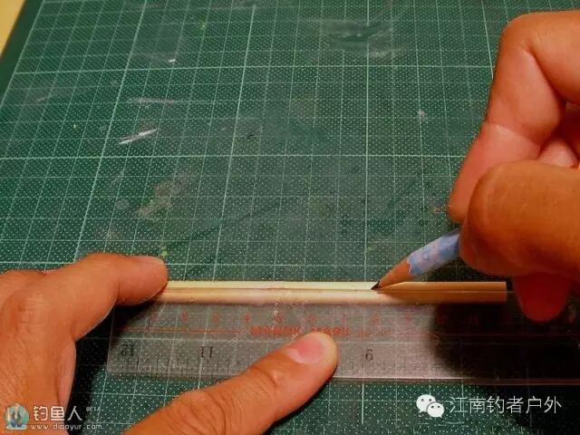 在划上色目前,先用铅笔按自已的标准来在标示杆画上色目相间的位置。