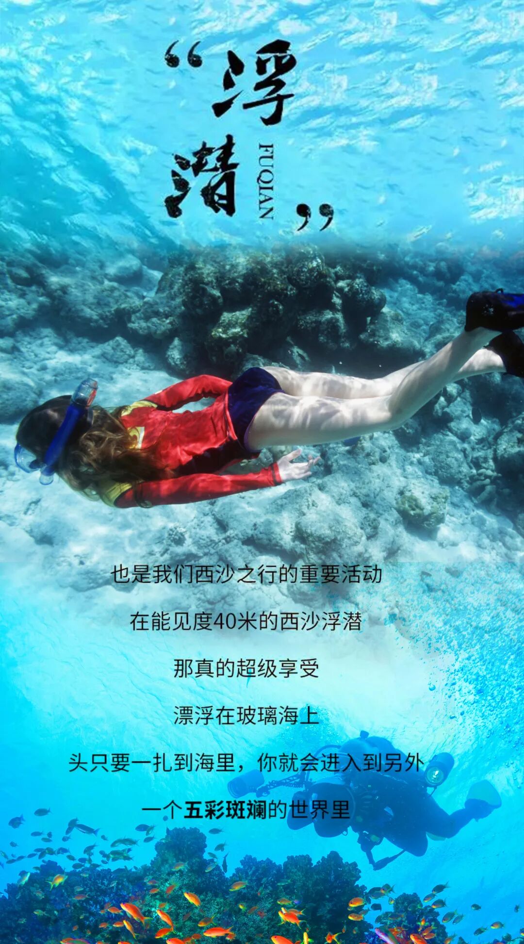 3.保护环境,游泳、浮潜潜水时请勿触摸或破坏珊瑚等违法行为,爱护海洋环境每个人都有义务与责任。