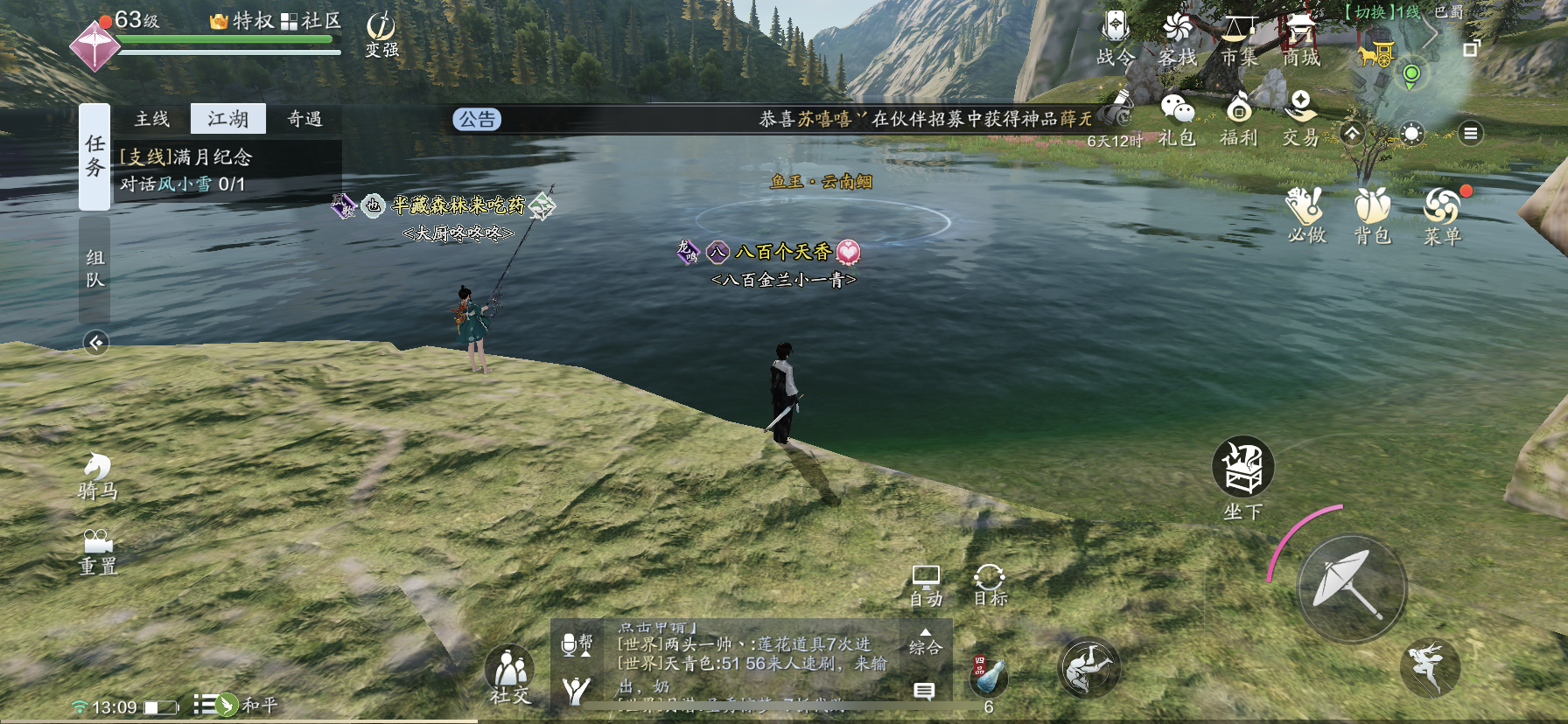 王鱼:垂钓需达到钓鱼等级18级,位于巴蜀地图最右侧,最近的传送点是云来镇。