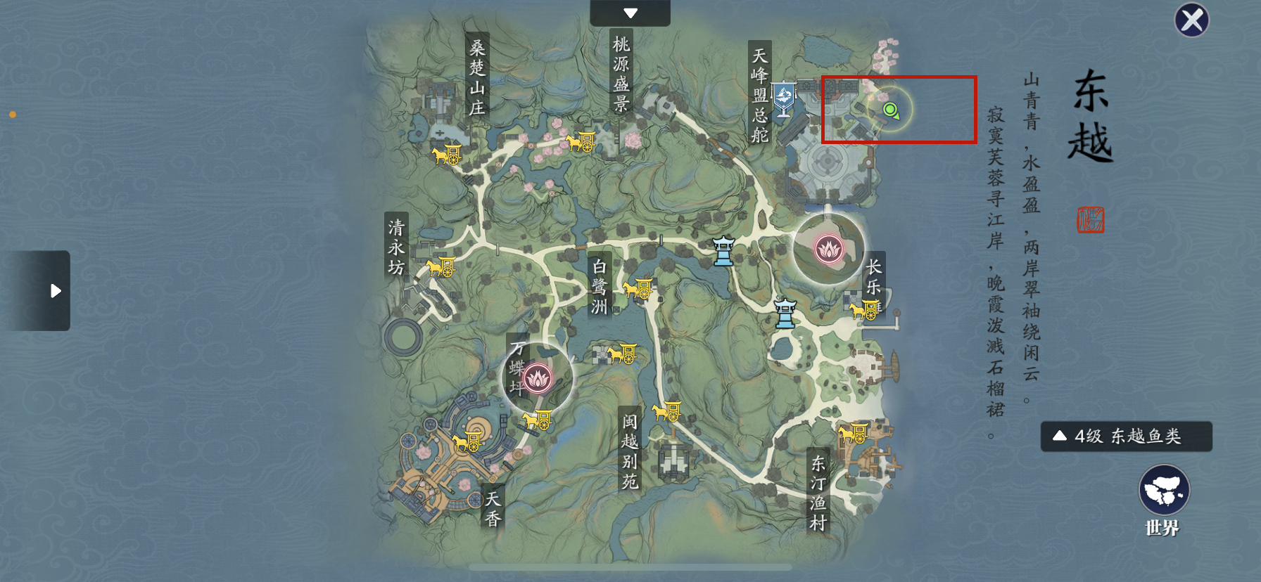 江团:垂钓需达到钓鱼等级25级,位于东越地图正中心,最近的传送点是白鹭洲。