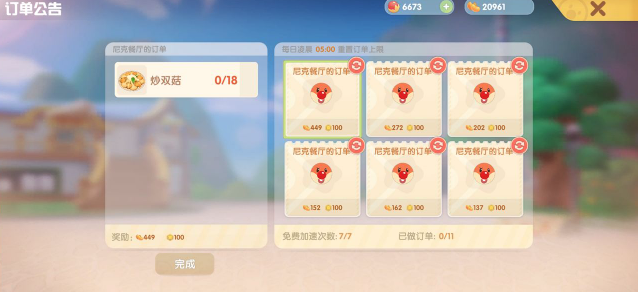 厨师也是有订单,这个只需要在红色灶台那快速烹饪相应的菜式即可。1)日常一般按任务要求去做菜就好。2)研究菜谱和烹饪手动的才会加经验。