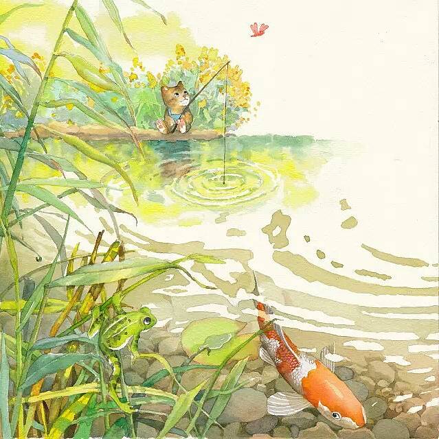 老猫看了看小猫,说:“钓鱼就钓鱼,不要这么三心二意的。一会儿捉蜻蜓,一会儿捉蝴蝶,怎么能钓着鱼呢?”