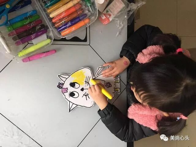 小猫画好后,用炫彩笔涂上喜欢的颜色,可以让小朋友自己选择。