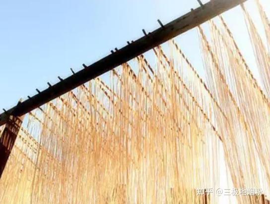 油坊里的老师傅用长长的竹筷分开面丝,超细的油面在晾晒架上直直地垂落下来,随风微摆。