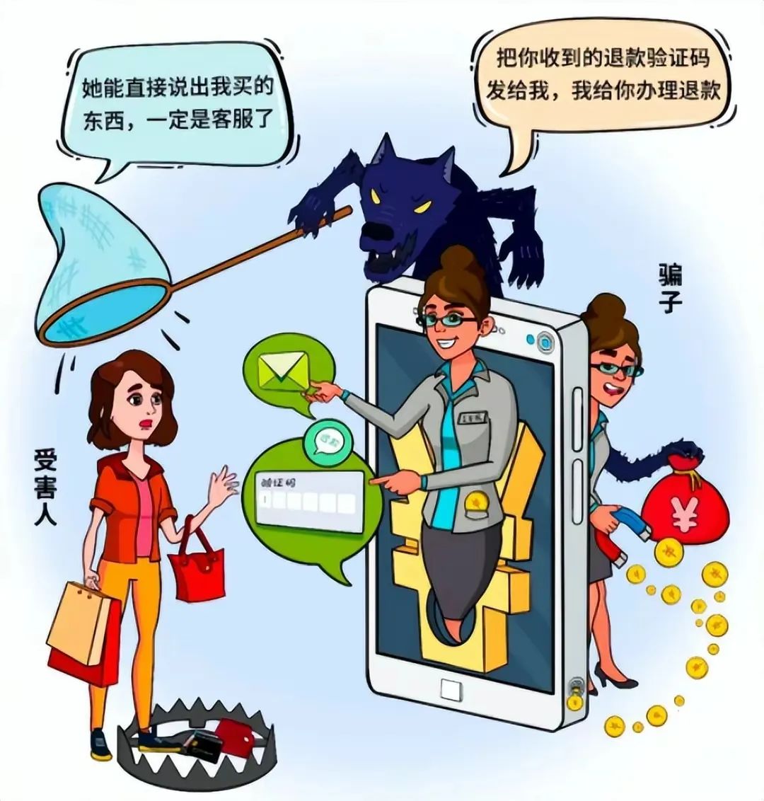诈骗分子冒充电商平台或物流快递企业客服,谎称受害人网购的商品被下架,以“理赔退款”为由要求缴费,诱导受害人提供银行卡和手机验证码等信息,并诱导受害人支付费用。