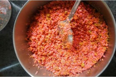 5、嫩玉米5根、葡萄200g、大豆500g、高粱米500g、豆渣500g、红枣200g、绿皮核桃2斤、洋姜300g。首先我们把玉米带轴之间用料理机打烂,接着把葡萄也打碎,高粱米跟大豆混合用炒股炒香,炒好以后用料理机破碎,红枣去核剁成碎末。绿皮核桃之间用料理机打成碎屑,洋姜用刀剁碎备用。此款窝料经过发酵以后味道更浓烈。不仅有谷物的香味还有水果的香味。这样的窝料在不同的鱼情下,可以快速的鲅鱼聚集诱到一起。