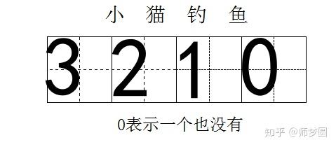 (1)、猫小弟一条鱼也没钓到,我们可以用数字0表示。