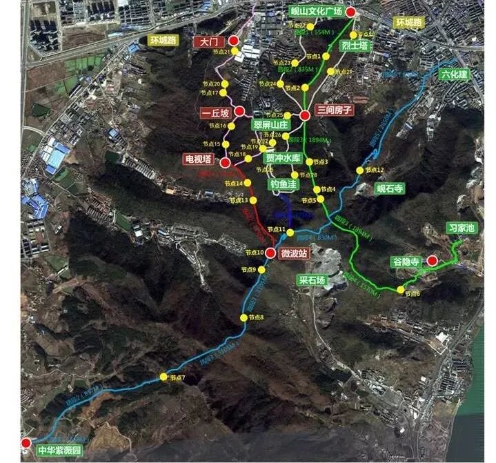 岘山绿道自2012年起,我市启动岘山绿道建设,分两期建成了环羊祜山、环钓鱼洼、岘山文化广场—谷隐寺、化六建—中华紫薇园、电视塔—微波站、钓鱼洼—微波站等6条线路,全长约37.4公里