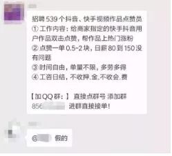 最近,河北石家庄市民管女士就在朋友圈看到一则消息,称:急招抖音点赞员 ,在家工作就能日赚80-100元。