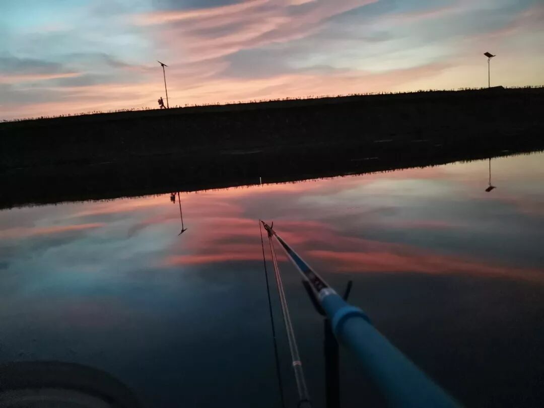 直到天色微亮,漫长的等待才终于过去,贪吃的小鲫鱼趁我不注意,一把拉走了浮漂。提杆、中鱼,拍照、取钩,然后我就把它放了回去,借用李大毛老师常说的一句话:孩子回去吧,把你家大人叫来。放流的一幕正好被早起散步的人看到了,他很好奇:把钓上来的鱼又给放回去,那你钓鱼图个啥。