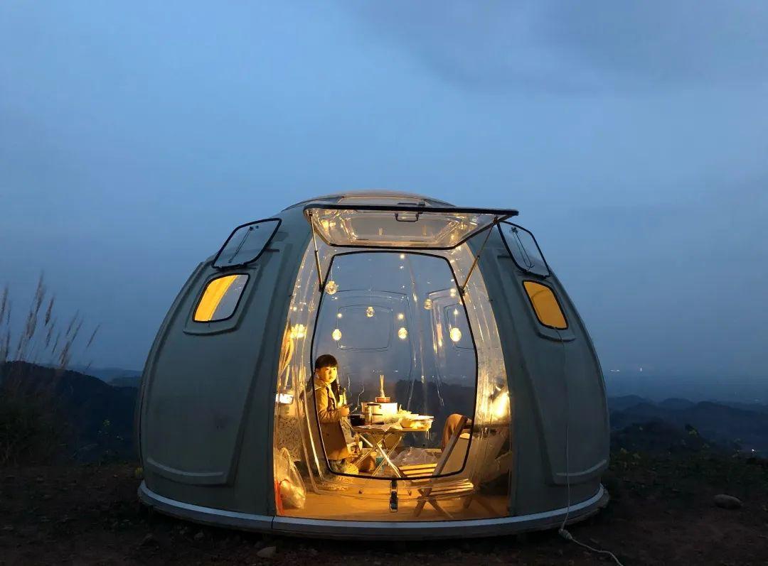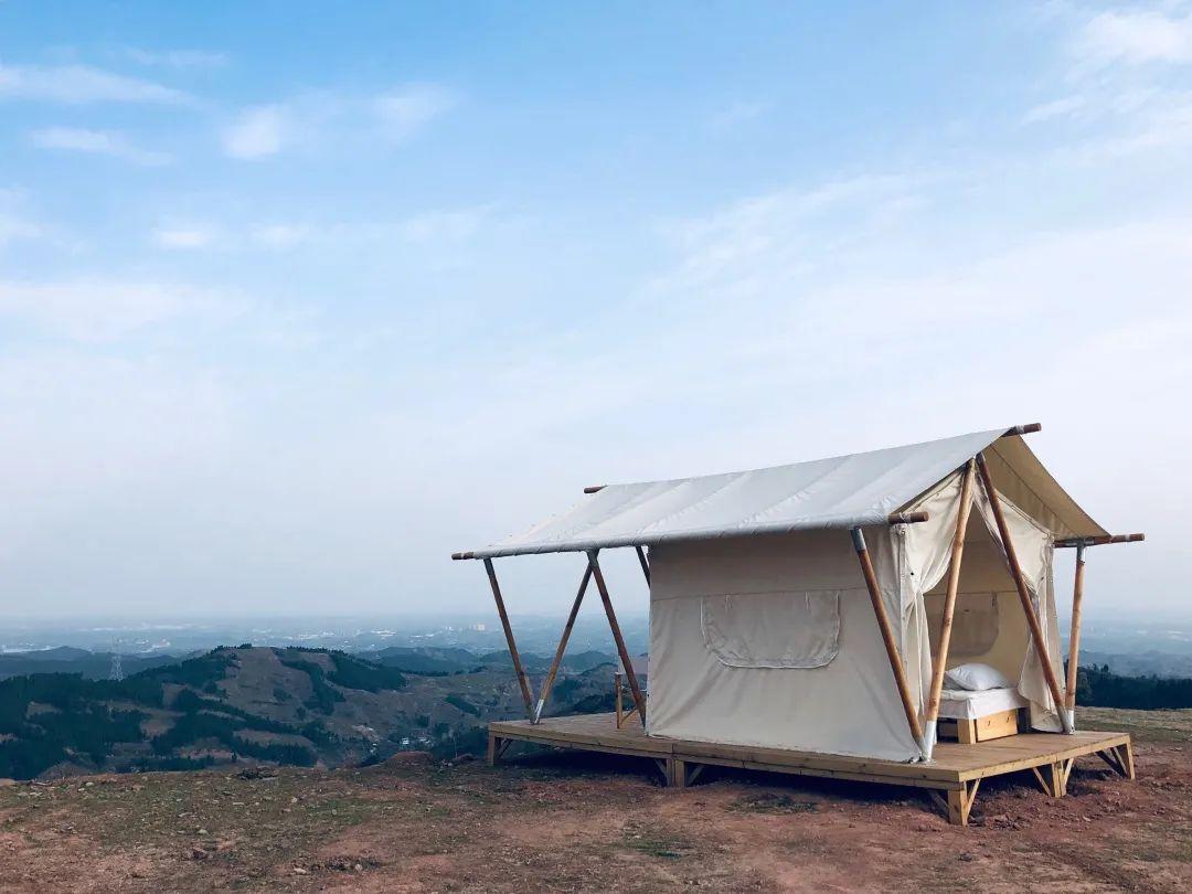 如今,何云阳在龙泉山上经营着一个叫做“云绎野奢”的露营地。