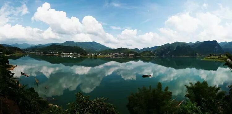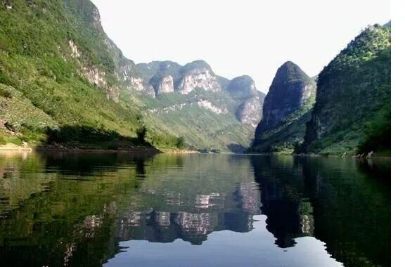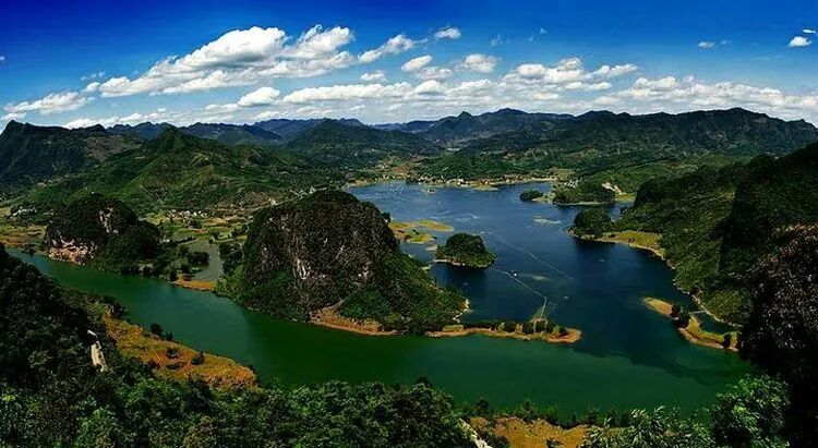 这是嫩山湖,也是往天下第一溶洞一一长乐宫的路口,红水河从这里往下走,是典型的喀斯特地貌,姿态各异的名岩峰丛,神奇莫测的溶洞数不胜数,似人似物的景点很多,有的象野马分鬃或神龟倒立,或猛兽追逐,有的如游龙出海,玉女穿梭或仙人驾鹤,栩栩如生。如长乐宫、仙阳洞、鼻子山、回音石、皇帝岩、忘忧谷、虎蹲鹰、龙凤穴、狩猎山、巴社山、苏仙岩、望夫岭、寡妇岛、断天涯、情侣山、埃及遗梦等自然天成,千姿百态,奇异动人。