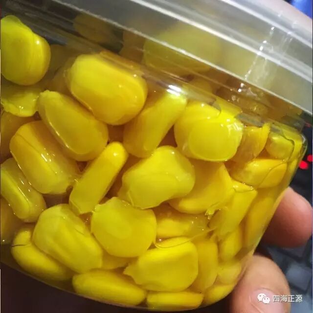 准备一个大一点的玻璃罐,将玉米粒倒入其中,然后加水泡上一个星期,等散发出酸臭味道,那么用来打窝的诱饵就已经做好了。