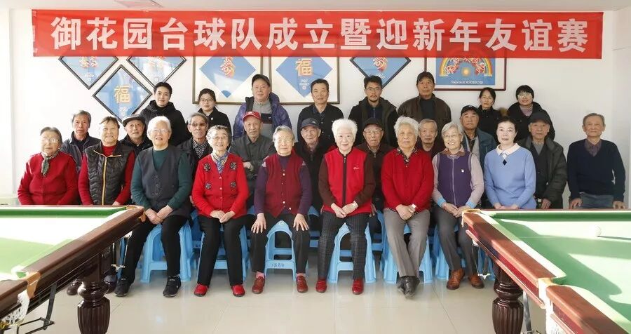 今天上午在俱乐部三楼台球室举行御花园台球队成立大会暨迎新春台球赛,欢欢主持,红波经理、须瑞兴队长、苑中贤总裁判长、运动员代表毕庶泮分别发言。红波开球,比赛正式开始。经过一上午的比赛胜出的前8名选手王福梅、徐修芬、于丰、谢彩玲、王学信、毕庶泮、牛犇、付愈康老人下午进行循环赛。仕翠莲说:93岁的王学信大叔和谢彩玲阿姨最令人敬佩,王大叔打球时思路清晰,手法娴熟,谢阿姨打球又稳又准,今天的最后一局是王学信和牛犇,大家都劝大叔要是累了就不打了,大叔连打两场还要继续,时间都下午五点半了。在大叔女儿的一再劝说下大叔才答应最后一场球明天早上再比,大叔的女儿说大叔一听说有台球比赛马上就报名参加了。虽然这是一场友谊赛,但老人们都严肃对待,会因为失误而懊恼,因为进球而欢呼,失败了再接再厉!