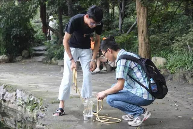 对公园进行初步观察之后,我组运用在专业课上学到的知识对每个公园的水体水质进行科学实验。