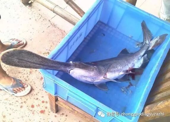 我是首次钓到鸭嘴鱼,心中难免兴奋,又因为自己对其知之甚少,为解愚钝,便打开手机,进入网络搜索。得知鸭嘴鱼,又名鸭嘴鲟。原产于美国密西西比河流域,是一种大型淡水经济鱼类,属鲟形目匙吻白鲟科,数亿年前就在地球上生活的一种鱼类。鸭嘴鱼为软骨鱼类,体表裸露,泽润无鳞,吻呈汤匙状,形似鸭嘴。它生长迅速,性情温顺,是以浮游生物为食的滤食性鱼类。鸭嘴鱼即不怕低温,也能耐高温。在冬季,只要水中仍有充足的溶解氧,就能存活。在夏季高温水域里它也可以正常生长。