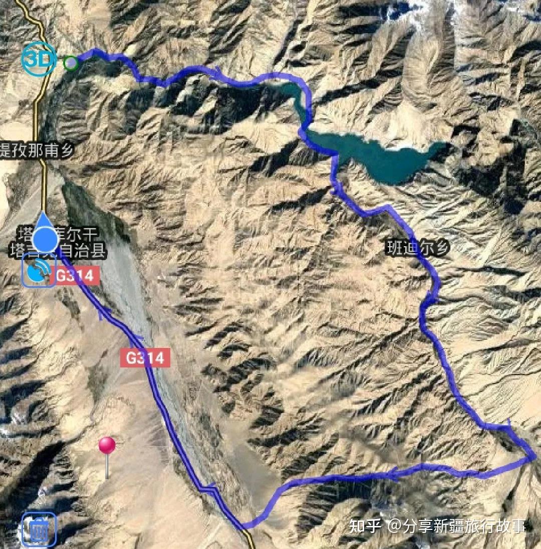 3、走盘龙古道下到山脚,右转就是瓦恰乡,左转就是大路,回程可以选择走大路。沿途会经过坎儿洋村、下坂地水库等。到下坂地水库左转回塔县,喀什,右转就是塔莎古道到莎车县。