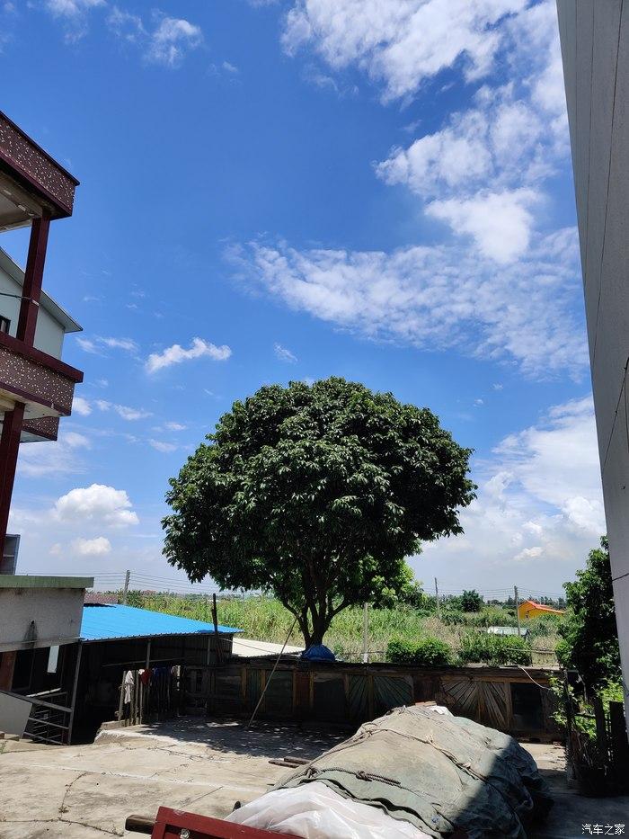 院子后边的这棵树长得圆滚滚的,挺好看。