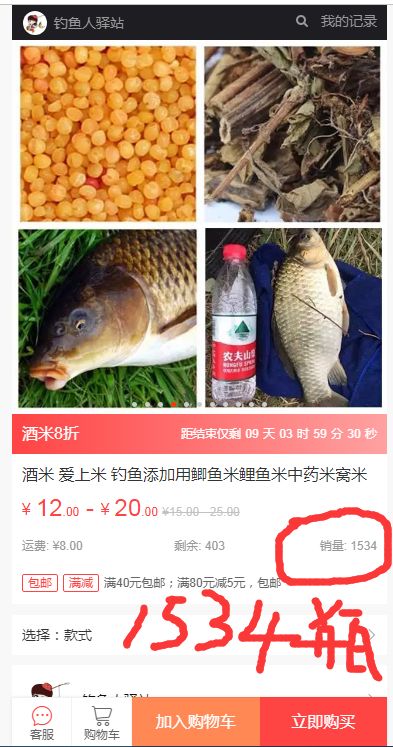 野钓想要渔获多,不用酒米可不行,钓鱼钓鱼,必定要先诱后钓啊,酒米就是诱鱼的。钓鱼人驿站 秘制的酒米 在微店已经售出1500多瓶