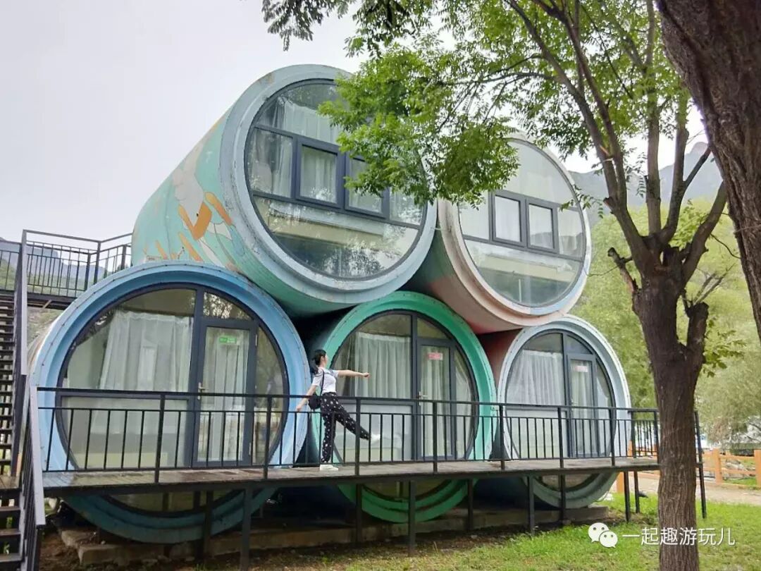 雅布伦山水文化园酒店位于五渡拒马河畔,依山傍水,景色秀丽,潺潺流水,酒店距离孤山寨景区驾车仅3.9公里(约6分钟),距离七渡花果山驾车仅3公里(约5分钟),酒店内有小溪有大片草地最适合孩子放风筝抓小鱼,跑马场还可以跑马哦,度假村具有北京周边独特的住宿方式——房车,集装箱,水泥管房等房型住宿,最重要的是酒店提供烧烤地点,烧烤架,碳,可自带饮食。而且即使是夏天也不用担心食物放坏,写个名字房间号,将其寄存在酒店前台大冰箱里即可。