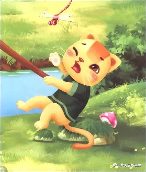 来到小河边,看到河边长满了青青的小草,河里的小鱼欢快的游着,咪咪开心极了,就迫不及待的开始钓鱼了,等了一会儿,鱼竿还没动,咪咪有点着急了,他看看妈妈,妈妈一动不动的坐着钓鱼。这时一只蜻蜓飞过来了,在咪咪的面前飞来飞去,好像在说:“快来和我做游戏吧!”咪咪把鱼竿赶快放下,去捉蜻蜓了,蜻蜓越飞越远,咪咪捉不到蜻蜓,只好回来了。