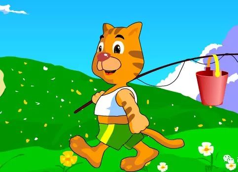 一天早上,风和日丽,小猫起了个早,猫妈妈带着小猫到河边去钓鱼,提着小桶,扛着鱼杆,来到了河边,端端正正地坐好,开始钓起鱼来。