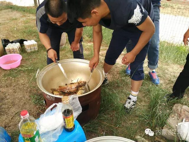 大家各自分工,什么切、剁、炖都难不倒我们这些能手们,不久炖鱼的香味就扑面而来了,周围的人已经迫不及待的垂涎于这独特的野外风味了。
