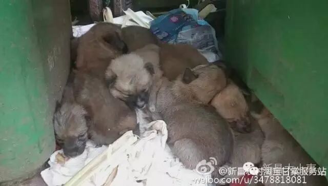 城东转盘菜场,平川路入口进来垃圾桶下有好多小狗,虽然是土狗主人也不应该这样直接扔掉啊~~有没有好心人过来领养啊???
