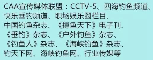 几乎涵盖了国内垂钓行业有影响力的所有媒体。并且在垂钓大赛活动当天,还邀请了23家电视台、知名纸媒以及新媒体等前来现场报道这一国家级赛事,对比赛进行全面的报道和推广。