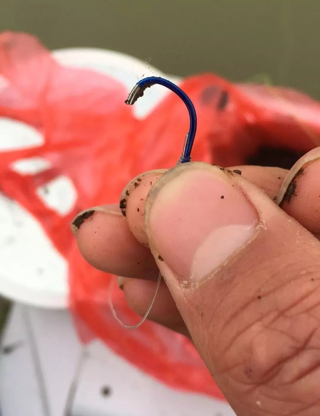 之后拿下鱼钩来看的时候,哇塞!鱼钩的钩尖居然断了!这个鱼钩到底是怎么把它给勾起来的?难道是前面“大鲫大鲤”带来的好运气才把这条鱼弄上来的呀,钓鱼运气真的很重要哇!