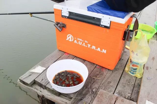 然后用脆螺去钓。这样自然提高了鱼吃到你钩上螺丝的概率。打窝的方式还是和上一篇写的一样。少打,勤打。每次十几颗,每十几分钟一次。有口就停,没口继续。螺丝千万不要打碎,打碎了不是说鱼不吃效果也会差很多,青鱼和人可不一样,剥好的瓜子吃的高兴。人家生来就是嚼螺丝的,你把人家活都干了肯定不乐意了。还有不要去买菜市场购买的那种屁股剪掉的螺丝。因为螺丝合上嘴盖以后里面就形成了半真空,钩穿嘴盖透过肉再出来你怎么抛都抛不掉。要是屁股一剪抛着抛着肉就被拉出来了。