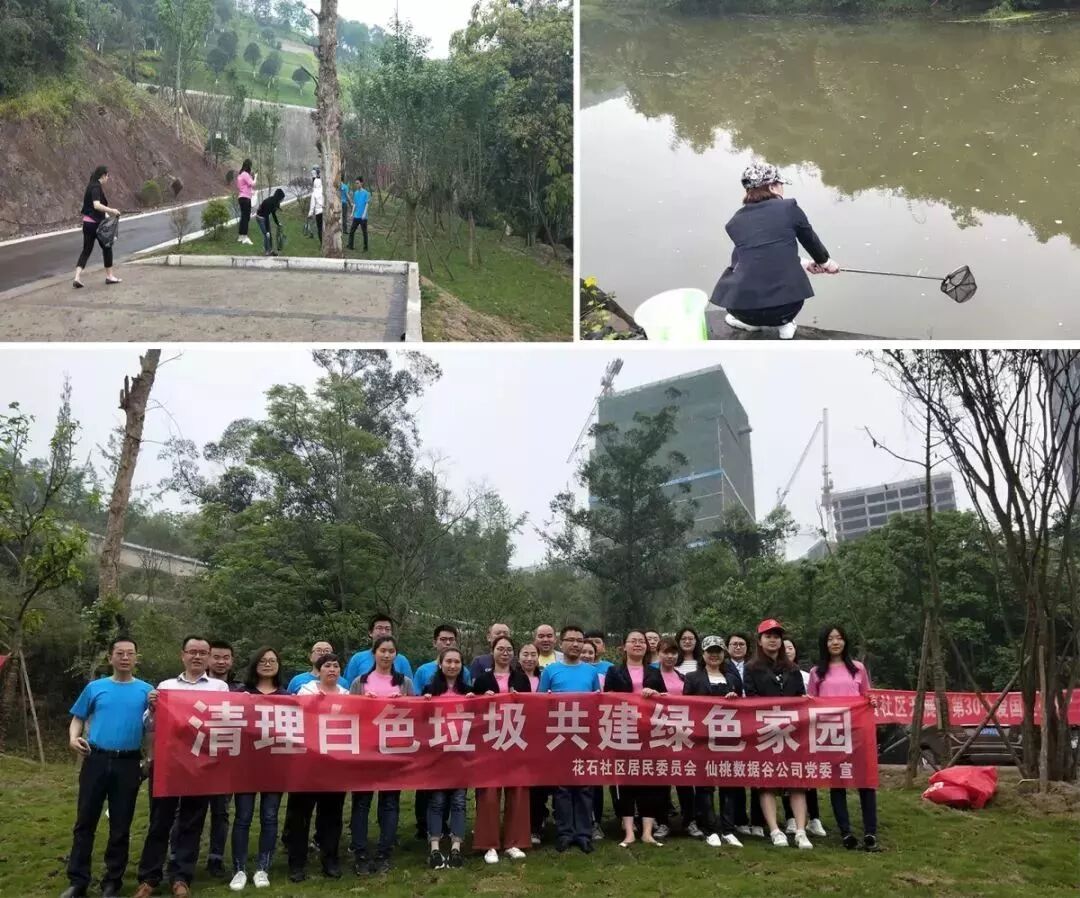 仙桃街道花石社区开展“清理白色垃圾 共建绿色家园”主题活动,组织志愿者清理湖边白色垃圾。