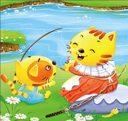 一天早上,猫妈妈带着小猫一块到河边钓鱼。一只蜻蜓飞来了。小猫看见了,放下鱼竿就去捉蜻蜓。小猫又扑又抓的,没有抓住蜻蜓,空着手回到河边来。一看,猫妈妈钓了一条大鱼。