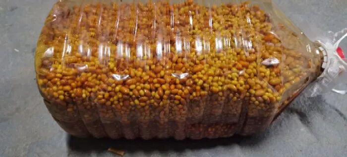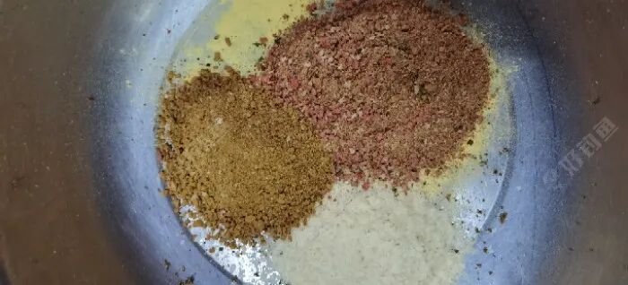 因为这边有个很烦人的鱼情,粉饵打下去之后,鲢鳙会进窝,这份窝料是准备在夏天垂钓鲮鱼的时候用的,夏天减少粉饵的量,而鲮鱼嘴巴小,花生这样大的颗粒吃不进嘴巴。